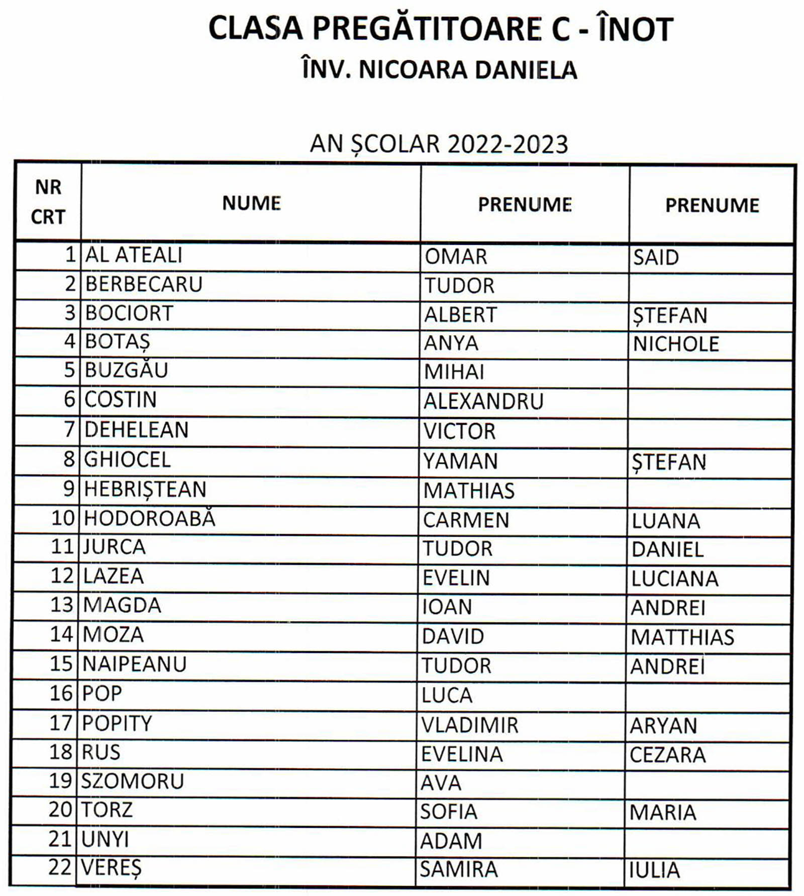 Participă copii din clasele a II-a C (prof. instit. Ribana Pop), a III-a E (prof. instit. Adriana Țigan), a IV-a A (prof. instit. Mihaela Selegean), a IV-a B (prof. instit. Ana Prodan), a IV-a C (prof. instit. Otilia Balaci), a IV-a D (prof. instit. Alina Năsui), a IV-a E (prof. instit. Mirela Gornic), a V-a A (prof. Florina Păsculescu) și a V-a C (prof. Ioana Tiulea).