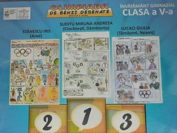 La prima ediție a Olimpiadei de Benzi Desenate, eleva Iris Stănescu (clasa a V-a A) a obținut locul II la categoria ei de vârstă. Olimpiada de Benzi Desenate este un concept al autorului și profesorului de benzi desenate Mihai I. Grăjdeanu, sub egida Comitetului Olimpic și Sportiv Român. Elevi de toate vârstele, din toate colțurile țării, s-au înscris la prima ediție a Olimpiadei de Benzi Desenate. Sute de benzi desenate au fost înscrise în concurs, zeci de planșe au ajuns în finală, povești inspirate de tema concursului: 100 de ani de la prima prezentare oficială a drapelului olimpic.